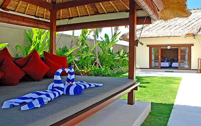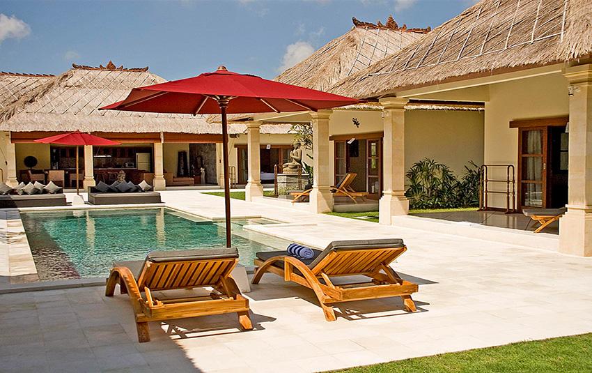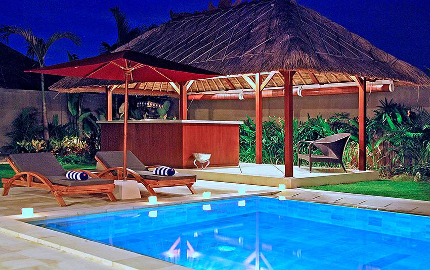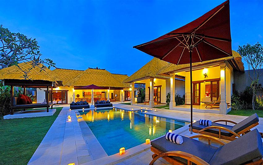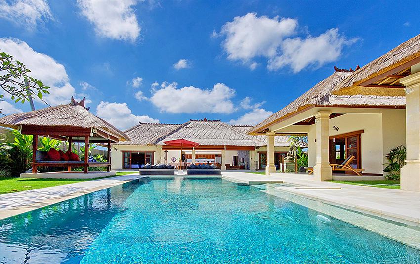 Villa grande y de lujo con piscina privada en Seminyak, Bali, Indonesia para 8 personas. La villa está situada en una zona playera y residencial, cerca de restaurantes y bares, tiendas y supermercados y a 500 m de la playa de Gado Gado. La villa tiene 4 dormitorios y 4 cuartos de baño. El alojamiento ofrece mucha privacidad, un jardín maravilloso con césped y árboles y una piscina maravillosa. El confort y la cercanía de la playa, sitios para salir y lugares para ir de compras hacen de esta villa un alojamiento perfecto para pasar sus vacaciones con familia o amigos.