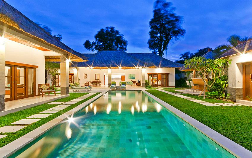 Villa bonita y de lujo en Seminyak, Bali, Indonesia con piscina privada para 12 personas. La villa está situada en una zona playera y residencial, cerca de restaurantes y bares, tiendas y supermercados y a 50 m de la playa de Gado Gado. La villa tiene 6 dormitorios y 6 cuartos de baño. El alojamiento ofrece mucha privacidad, un jardín maravilloso con césped y árboles y una piscina maravillosa. El confort y la cercanía de la playa, sitios para salir y lugares para ir de compras hacen de esta villa un alojamiento perfecto para pasar sus vacaciones con familia o amigos.