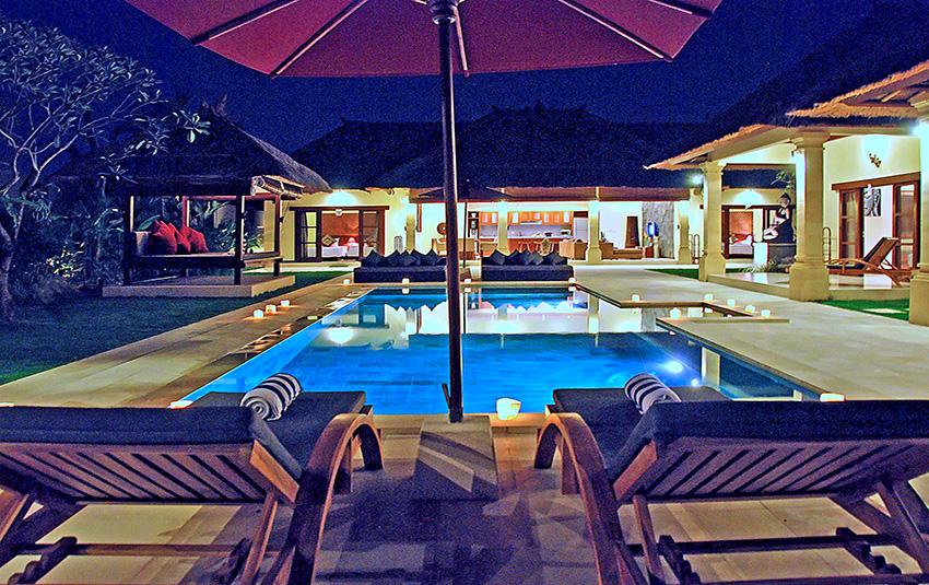 Grosse und Luxus Villa in Seminyak, auf Bali, Indonesien mit privatem Pool für 8 Personen. Die Villa liegt in einer residentiellen Umgebung, in der Nähe von Restaurants und Bars, Geschäften und Supermärkten und etwa 500 M entfernt vom Strand von Gado Gado. Die Villa hat 4 Schlafzimmer und 4 Badezimmer. Die Unterkunft bietet viel Privatsphäre, einen wunderschönen Garten mit Rasen und Bäumen und einen wunderschönen Pool. Die Bequemlichkeit und die Nähe vom Strand, Einkaufsmöglichkeiten und Orten zum Ausgehen machen dies zu einer ausgezeichneten Villa um Ihre Ferien zu verbringen mit Familie und Freunden.