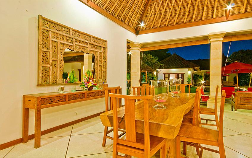 Grosse und Luxus Villa mit privatem Pool in Seminyak, auf Bali, Indonesien für 10 Personen. Die Villa liegt in einer residentiellen Umgebung, in der Nähe von Restaurants und Bars, Geschäften und Supermärkten und etwa 500 M entfernt vom Strand von Gado Gado. Die Villa hat 5 Schlafzimmer und 5 Badezimmer. Die Unterkunft bietet viel Privatsphäre, einen wunderschönen Garten mit Rasen und Bäumen und einen wunderschönen Pool. Die Bequemlichkeit und die Nähe vom Strand, Einkaufsmöglichkeiten und Orten zum Ausgehen machen dies zu einer ausgezeichneten Villa um Ihre Ferien zu verbringen mit Familie und Freunden.