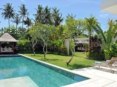 Beautiful and luxury villa with private pool in Canggu, Bali, Indonesia for 4 persons. The villa is situated in a residential area, close to restaurants and bars, shops, supermarkets and a tennis court and at 1 km from Batu Belig beach. The villa has 2 bedrooms, 2 bathrooms and 1 guest toilet. The accommodation offers a lot of privacy, a wonderful lawned garden with gravel and trees and a wonderful pool. Its comfort and the vicinity of the beach, places to shop, sports activities and places to go out make this an ideal villa to celebrate your holidays with family or friends.