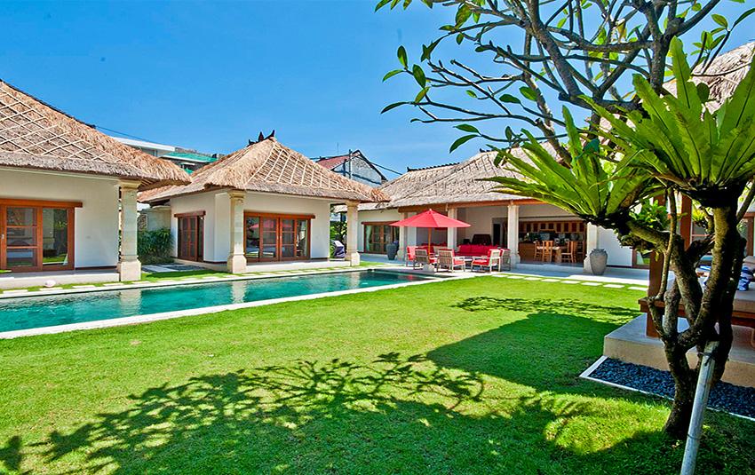 Large and luxury villa in Seminyak, Bali, Indonesia with private pool for 10 persons. The villa is situated in a residential beach area, close to restaurants and bars, shops and supermarkets and at 500 m from Gado Gado beach. The villa has 5 bedrooms and 5 bathrooms. The accommodation offers a lot of privacy, a wonderful lawned garden with trees and a wonderful pool. Its comfort and the vicinity of the beach, places to shop and places to go out make this a perfect villa to celebrate your holidays with family or friends.
