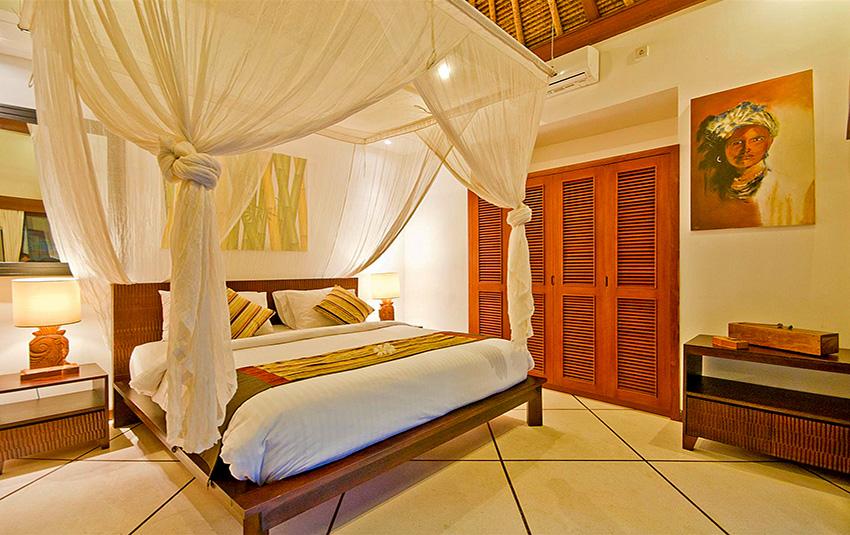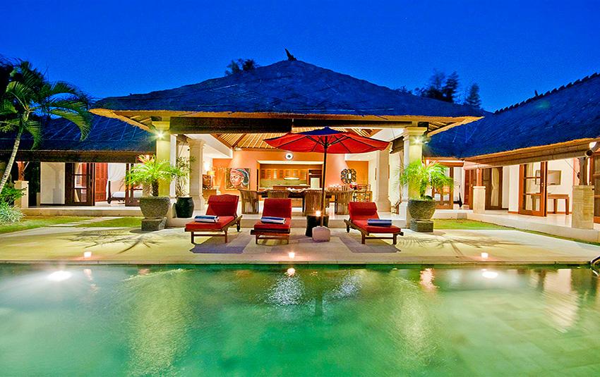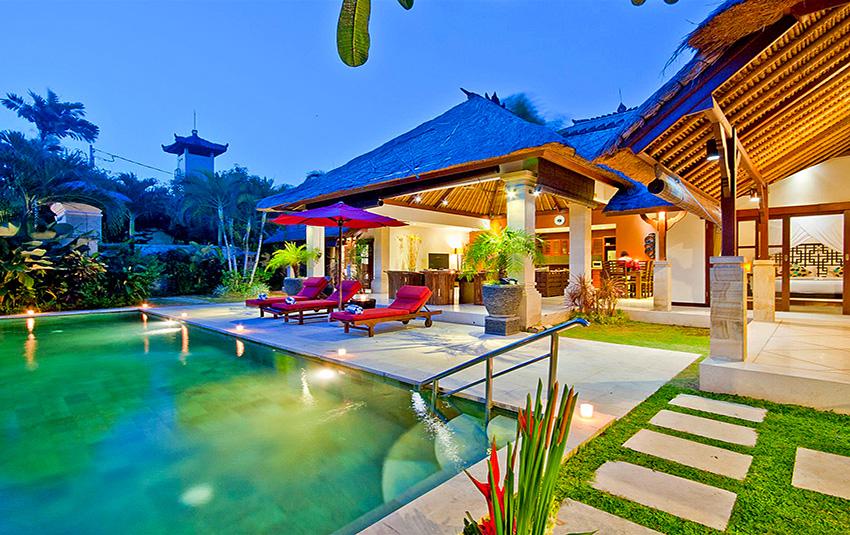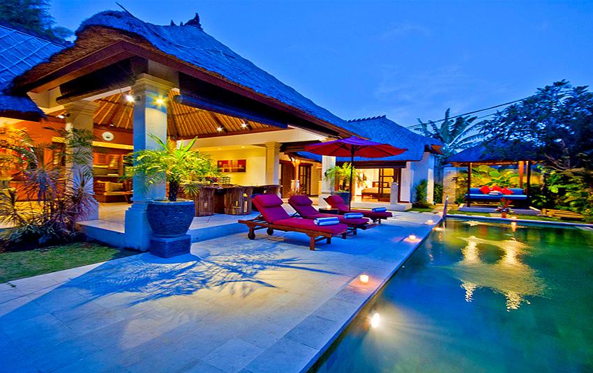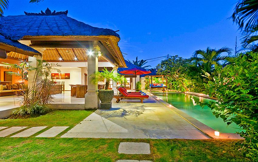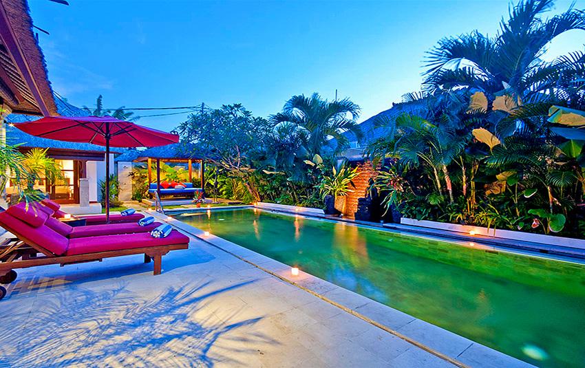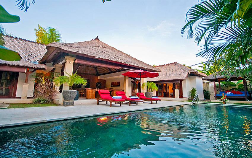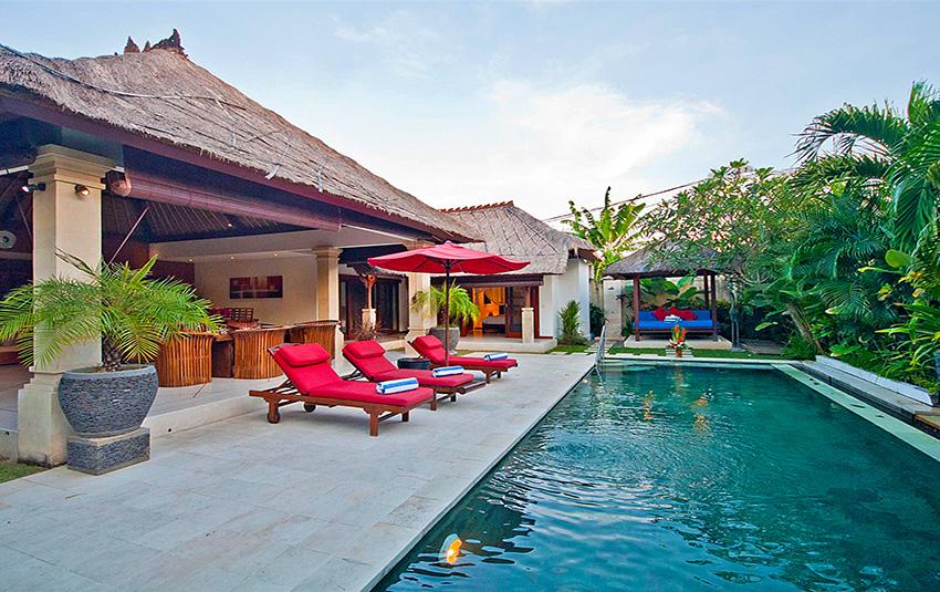 Beautiful and cheerful villa with private pool in Seminyak, Bali, Indonesia for 6 persons. The villa is situated in a residential beach area, close to restaurants and bars, shops and supermarkets and at 500 m from Gado Gado beach. The villa has 3 bedrooms and 3 bathrooms. The accommodation offers a lot of privacy, a wonderful lawned garden with trees and a wonderful pool. Its comfort and the vicinity of the beach, places to shop, sports activities and places to go out make this a perfect villa to celebrate your holidays with family or friends.