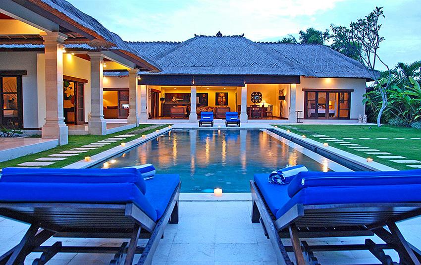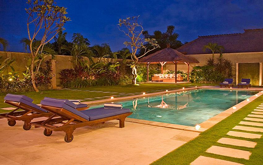 Wonderful and luxury villa with private pool in Seminyak, Bali, Indonesia for 8 persons. The villa is situated in a residential beach area, close to restaurants and bars, shops and supermarkets and at 500 m from Gado Gado beach. The villa has 4 bedrooms and 4 bathrooms. The accommodation offers a lot of privacy, a wonderful lawned garden with trees and a wonderful pool. Its comfort and the vicinity of the beach, places to shop and places to go out make this a perfect villa to celebrate your holidays with family or friends.