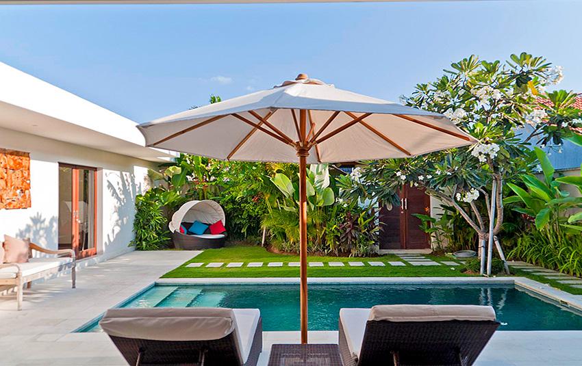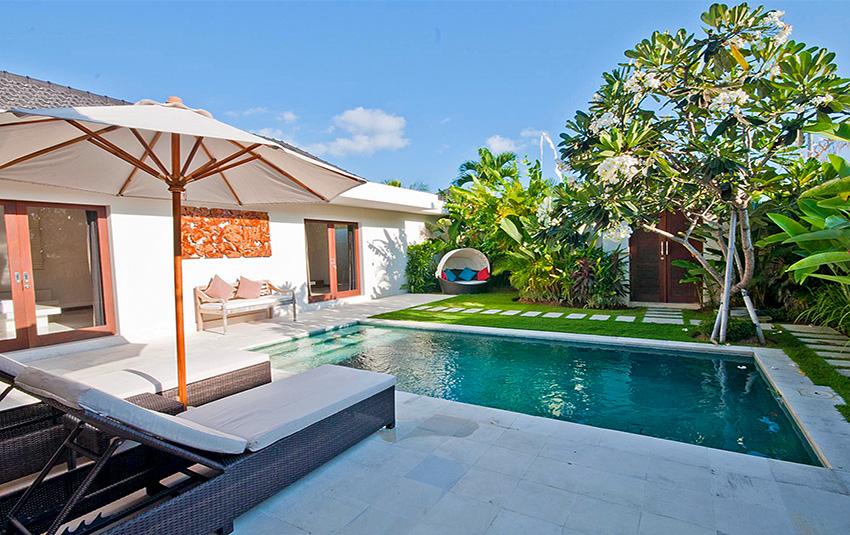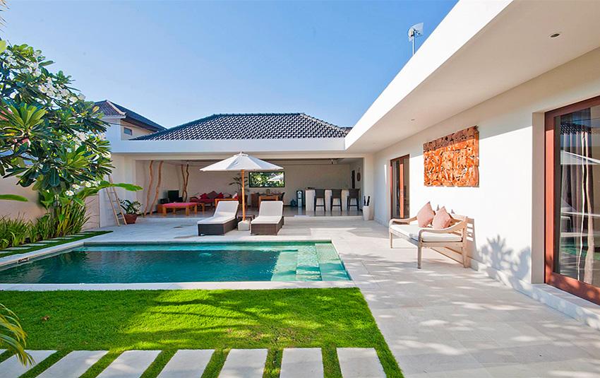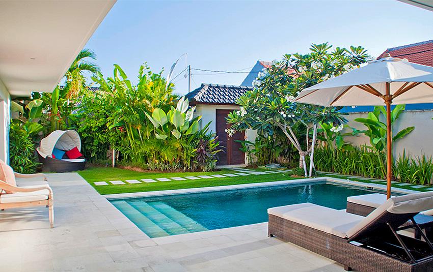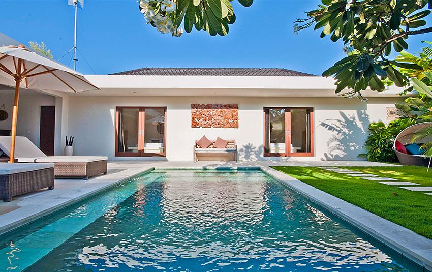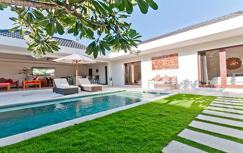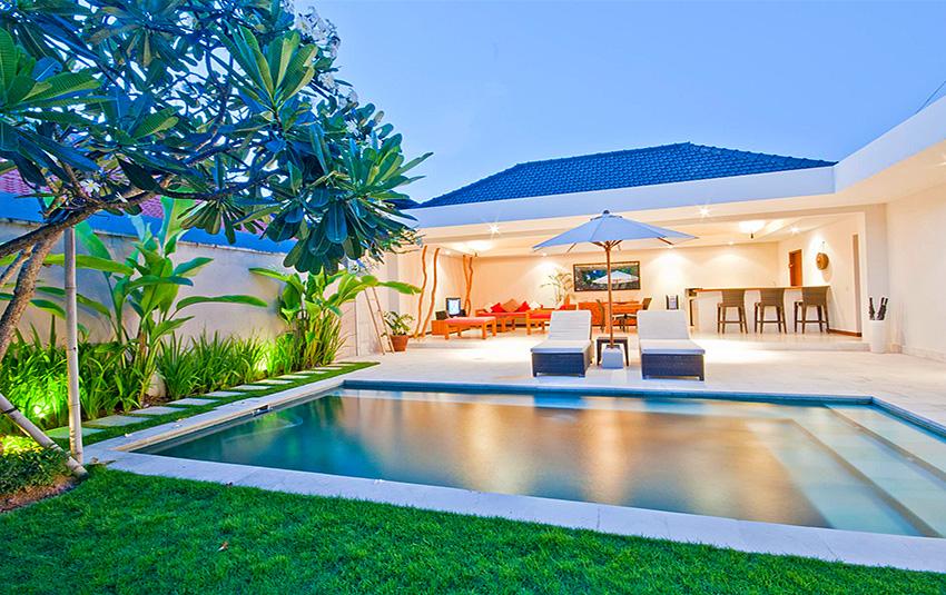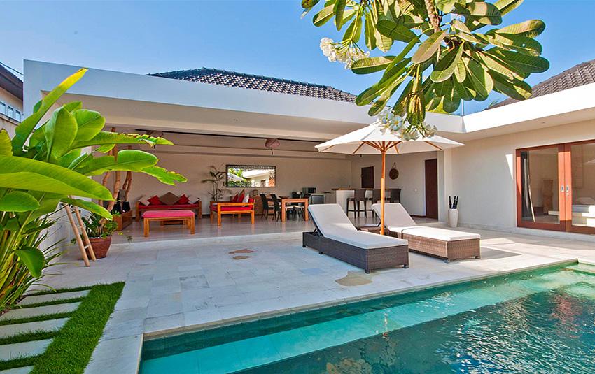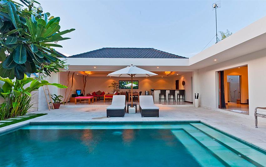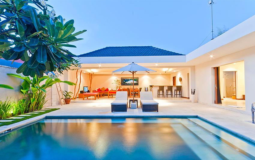 Belle villa de luxe à Seminyak, Bali, Indonésie avec piscine privée pour 4 personnes. La villa est située dans une région balnéaire et résidentielle, près de restaurants et bars, de magasins et de supermarchés et à 500 m de la plage de Petitenget. La villa a 2 chambres à coucher et 2 salles de bain. Le logement offre beaucoup d'intimité, un jardin merveilleux avec pelouse et d´arbres et une piscine merveilleuse. Le comfort et le voisinage de la plage, d'endroits pour faire du shopping, d'activités sportives et d'endroits pour sortir rendent cette villa un logement excellent pour passer vos vacances avec votre famille ou vos amis.