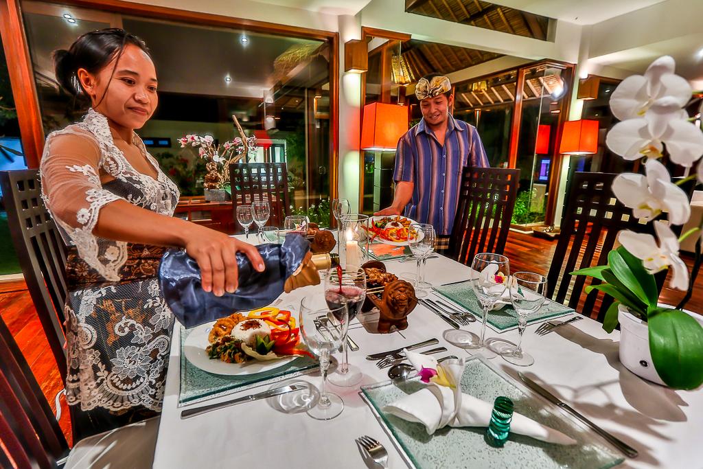 Villa Jukung convient pour 8 personnes et offre 4 chambres et 4 salles de bain.