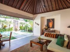 Belle villa de luxe à Canggu, Bali, Indonésie avec piscine privée pour 2 personnes. Ce logement de station est situé dans une station ave, dans une région résidentielle, près de restaurants et bars, de magasins, de supermarchés et d'un court de tennis et à 1 km de la plage de Batu Belig. Ce logement de station a 1 chambre à coucher, 1 salle de bain et 1 toilette pour les invités. Le logement offre beaucoup d'intimité, un jardin merveilleux avec pelouse, gravier et d´arbres et une piscine merveilleuse. Le comfort et le voisinage de la plage, d'endroits pour faire du shopping, d'activités sportives et d'endroits pour sortir rendent cette villa un logement idéal pour passer vos vacances.