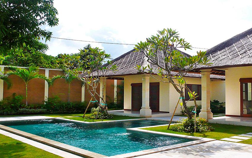 Belle villa intime avec piscine privée à Seminyak, Bali, Indonésie pour 4 personnes. La villa est située dans une région balnéaire et résidentielle, près de restaurants et bars, de magasins et de supermarchés et à 500 m de la plage de Gado Gado. La villa a 2 chambres à coucher et 2 salles de bain. Le logement offre beaucoup d'intimité, un jardin merveilleux avec pelouse et d´arbres et une piscine merveilleuse. Le comfort et le voisinage de la plage, d'endroits pour faire du shopping, d'activités sportives et d'endroits pour sortir rendent cette villa un logement excellent pour passer vos vacances avec votre famille ou vos amis.