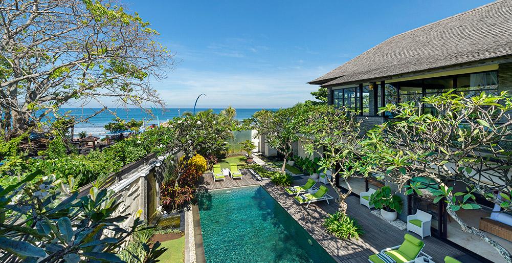Grande villa de luxe avec piscine privée à Seminyak, Bali, Indonésie pour 10 personnes. La villa est située dans une région balnéaire et résidentielle et à 100 m de la plage de Batu Belig.