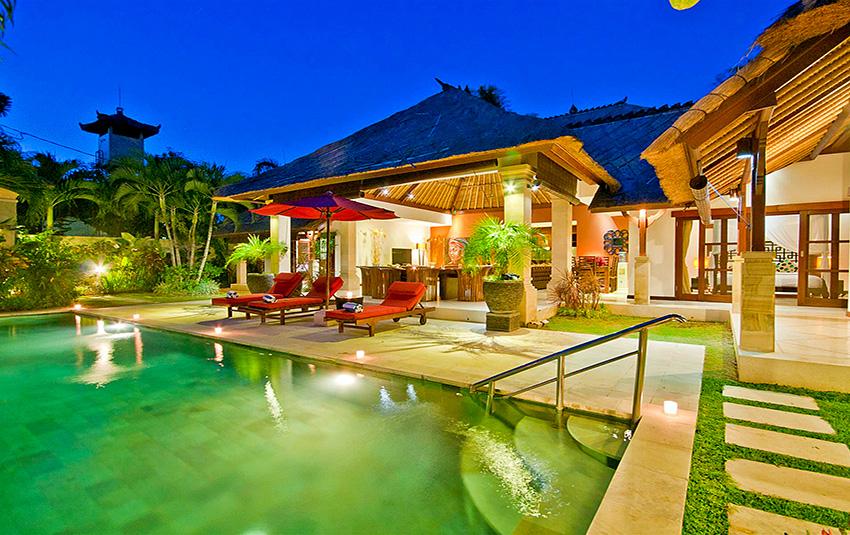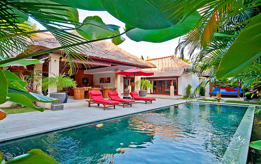 Belle villa intime à Seminyak, Bali, Indonésie avec piscine privée pour 6 personnes. La villa est située dans une région balnéaire et résidentielle, près de restaurants et bars, de magasins et de supermarchés et à 500 m de la plage de Gado Gado. La villa a 3 chambres à coucher et 3 salles de bain. Le logement offre beaucoup d'intimité, un jardin merveilleux avec pelouse et d´arbres et une piscine merveilleuse. Le comfort et le voisinage de la plage, d'endroits pour faire du shopping, d'activités sportives et d'endroits pour sortir rendent cette villa un logement excellent pour passer vos vacances avec votre famille ou vos amis.