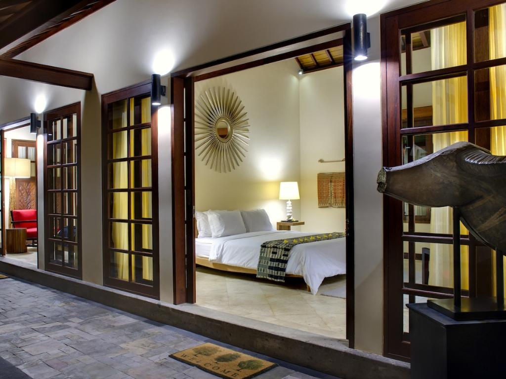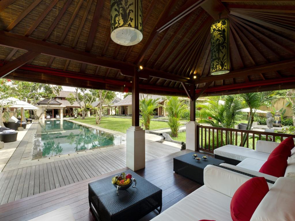 Grande villa de luxe avec piscine privée à Ubud, Bali, Indonésie pour 12 personnes. La villa est située dans une région résidentielle. La villa a 6 chambres à coucher et 6 salles de bain. Le logement offre beaucoup d'intimité, un jardin merveilleux avec pelouse et d´arbres et une grande piscine merveilleuse.