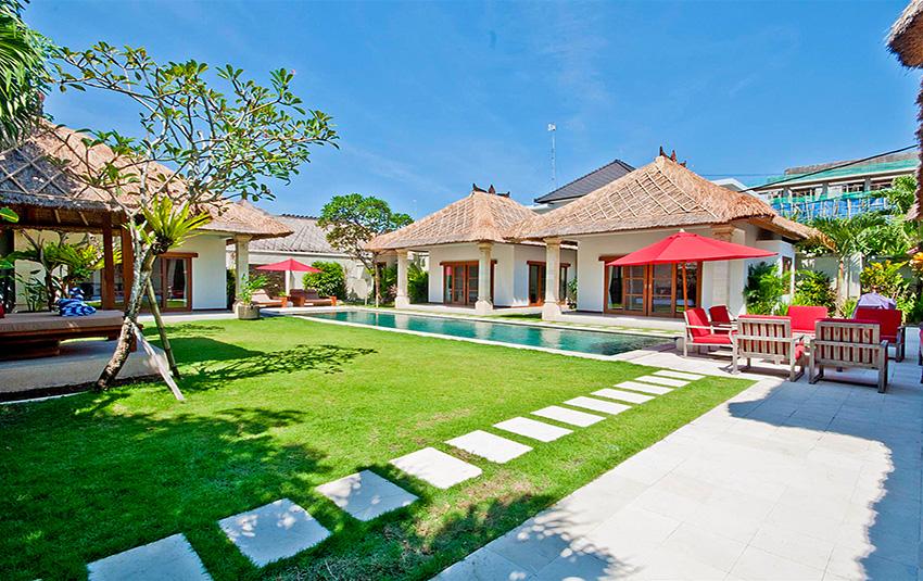 Grote en luxe villa met privé zwembad in Seminyak, op Bali, Indonesië voor 10 personen. De villa ligt in een residentiële omgeving, dichtbij restaurants en bars, winkels en supermarkten en op 500 m van het strand van Gado Gado. De villa heeft 5 slaapkamers en 5 badkamers. De accommodatie biedt veel privacy, een prachtige tuin met gazon en bomen en een prachtig zwembad. Het comfort en de nabijheid van het strand, gelegenheden om te winkelen en uitgaansgelegenheden maken dit een uitstekende villa om uw vakantie te vieren met familie of vrienden.